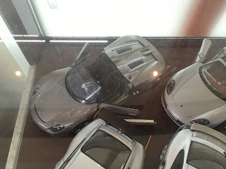 パン屋の横のショーウインドウの中に、1/18の歴代ポルシェやトヨタ2000GTやスカイラインのミニカーが沢山飾ってあって、なんでココにあるのだろう??